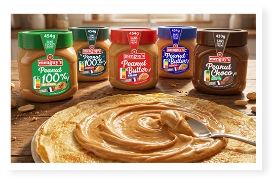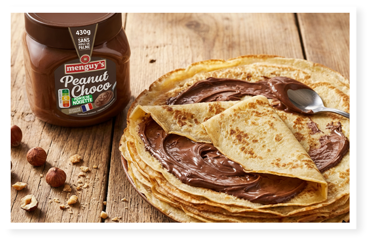 Pour l’occasion, les beurres de cacahuète Menguy’s s’invitent sur toutes les crêpes ! Dans la pâte, en topping, en version sucrée ou salée, ils ouvrent le champ des possibles et transforment une tradition bien connue en véritable terrain d’expression gourmande.