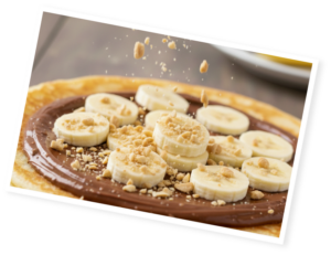 Crêpe choco-cacahuète express : Peanut Choco, banane et éclats de cacahuètes