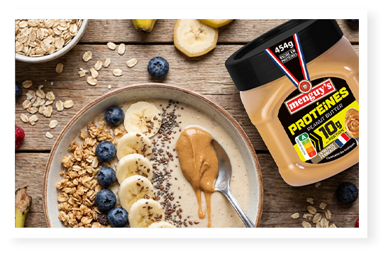 Chez Menguy’s, nous pensons que la nutrition ne doit pas être cloisonnée entre alimentation du quotidien et nutrition sportive. Avec notre Peanut Butter Protéines, nous avons souhaité proposer un produit capable d’accompagner les rythmes de vie actuels, faits d’activité physique, de journées bien remplies et de moments gourmands.