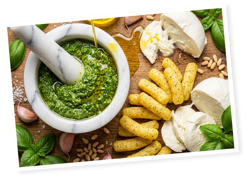 Si le pesto séduit autant, c’est parce qu’il combine intensité aromatique et équilibre. Son goût, immédiatement reconnaissable, apporte du caractère et une fraîcheur qui évoque instantanément l’Italie et les repas ensoleillés.