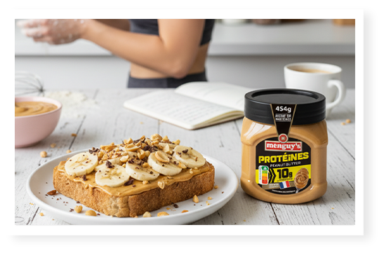 Les habitudes alimentaires évoluent, tout comme les usages. Aujourd’hui, de plus en plus de consommateurs recherchent des produits capables de s’intégrer facilement à leur quotidien, que ce soit au petit-déjeuner, en collation ou après une activité physique. C’est de cette observation qu’est né notre Peanut Butter Protéines Menguy’s.