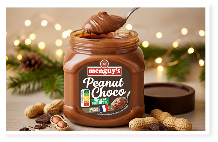 Le Peanut Choco a ce petit quelque chose qui transforme n’importe quel dessert en vrai moment de gourmandise : c’est l’alliance de notre Peanut Butter Creamy, de chocolat noir et de noisettes torréfiées. Une recette unique, bien différente des pâtes à tartiner classiques, qui apporte un vrai goût cacahuète-chocolat à vos créations de fête.
