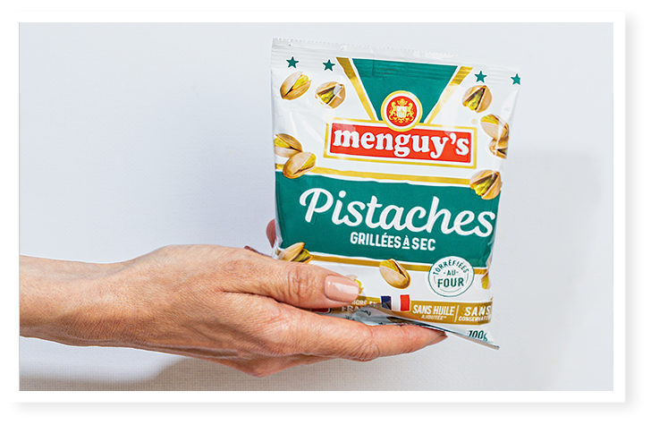 - 50 g de pistaches grillées à sec et salées Menguy’s (décortiquées)