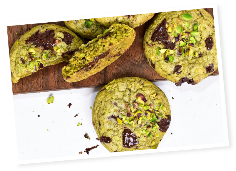 - Enfournez 12 minutes à mi-hauteur. À la sortie du four, disposez quelques éclats de pistaches. Laissez tiédir avant de croquer !