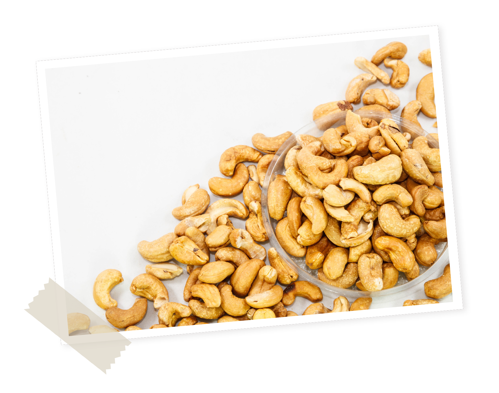 Une fois mûrs, les fruits sont récoltés à la main, puis souvent séchés naturellement au soleil sur de grandes dalles en ciment, ou, selon les installations, via des procédés de séchage mécanique. La coque est ensuite traitée à la vapeur (steam cooking), une étape qui la rend plus souple et facilite l’extraction de la graine. Les noix sont ensuite décortiquées, puis séchées ou légèrement torréfiées pour stabiliser leur humidité avant le transport. Enfin, elles sont dépelliculées et triées avec soin selon leur taille et leur qualité, avant d’être expédiées vers notre usine en France, où elles seront grillées et préparées selon le savoir-faire Menguy’s.